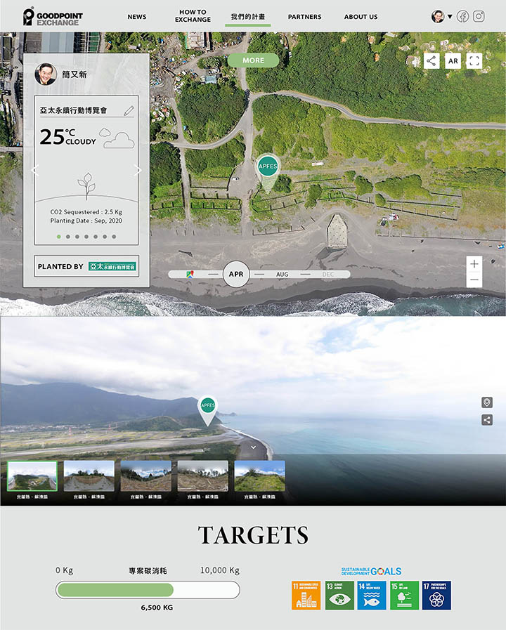 ▲ 亞太永續行動博覽會透過公民森林行動計畫,為每個參展品牌種下一棵樹,率先共植100棵可線上觀測減碳數據的小樹苗。